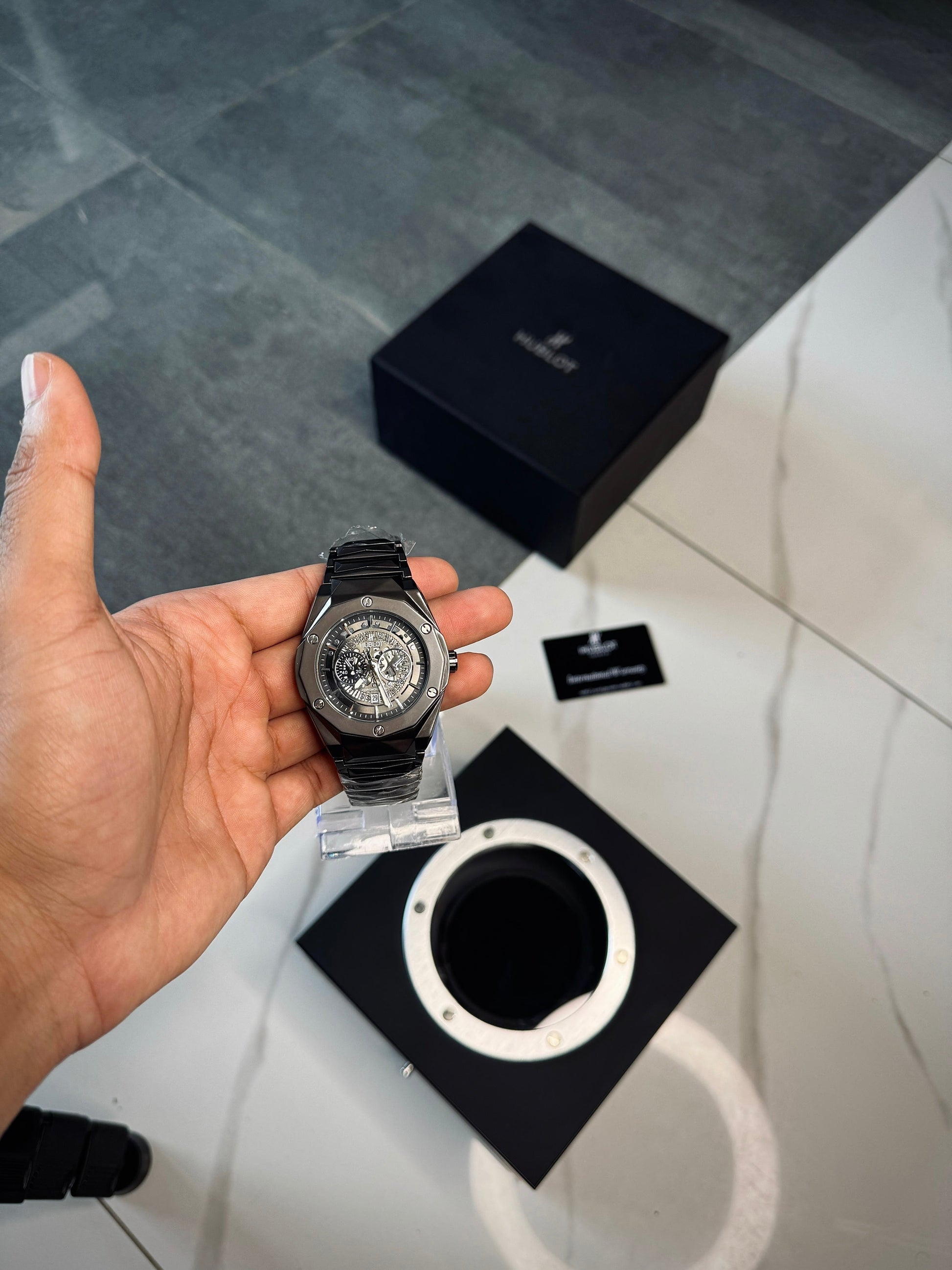 Experience the ultimate in luxury and durability with the Hublot Cut watch. Boasting a master butterfly lock and premium quality chain, this watch is renowned for its unparalleled heavyweight and superior quality. Invest in the best with Hublot Cut.